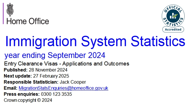 英國2024年第三季度簽證數(shù)據(jù)發(fā)布!我國工簽申請量及獲批量均增加!
